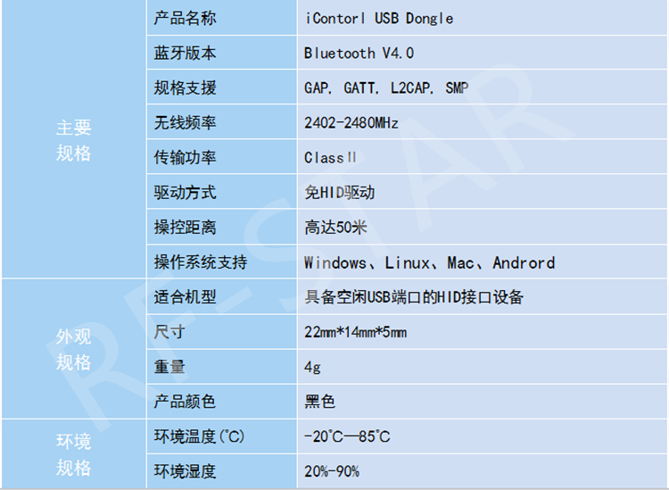 产品集成了低功耗蓝牙协议栈和USB HID协议,一方面具有功耗极低、抗干扰强、高保密性和使用寿命长等特点,另一方面又具有自带HID驱动,无需安装任何软件与驱动,就能对被操作系统进行控制的优势。