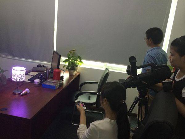 在对康总采访中,《“科”视鹏城》栏目组问到我公司多年来专注的低功耗无线技术及在国内的推广情况以及企业的未来规划,康总逐一进行了解答,并向栏目组展示了公司的无线射频模块及整体解决方案、仪器测试方案。蓝牙智能LED灯控方案,是我公司近期重点推广的项目,通过在LED灯泡中内置核心蓝牙智能模块,并配合手机端APP功能的开发,可通过智能手机无线控制灯光的开关,调节灯光的颜色、亮度,一键设定照明场景,音乐情景等,在方案的演示过程中,栏目组成员对此产品表示了极大的肯定和赞许。