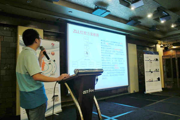 紧接着,我司技术工程师Eaton、Euro分别带来了ZigBee Light Link协议及其灯控技术、Bluetooth 4.0技术及其灯控介绍。Eaton从技术研发角度,深入分析了ZLL标准协议、Zigbee现有技术规范、ZLL Touchulink机制以及我公司最新ZLL设计方案,给与会人员带来了最前沿的技术信息。Euro介绍了蓝牙4.0在灯控领域的技术应用之余,分析了LED行业的市场前景,并构想了BLE智能LED灯在智能家居领域的广泛应用空间,激发了与会人员的兴趣。