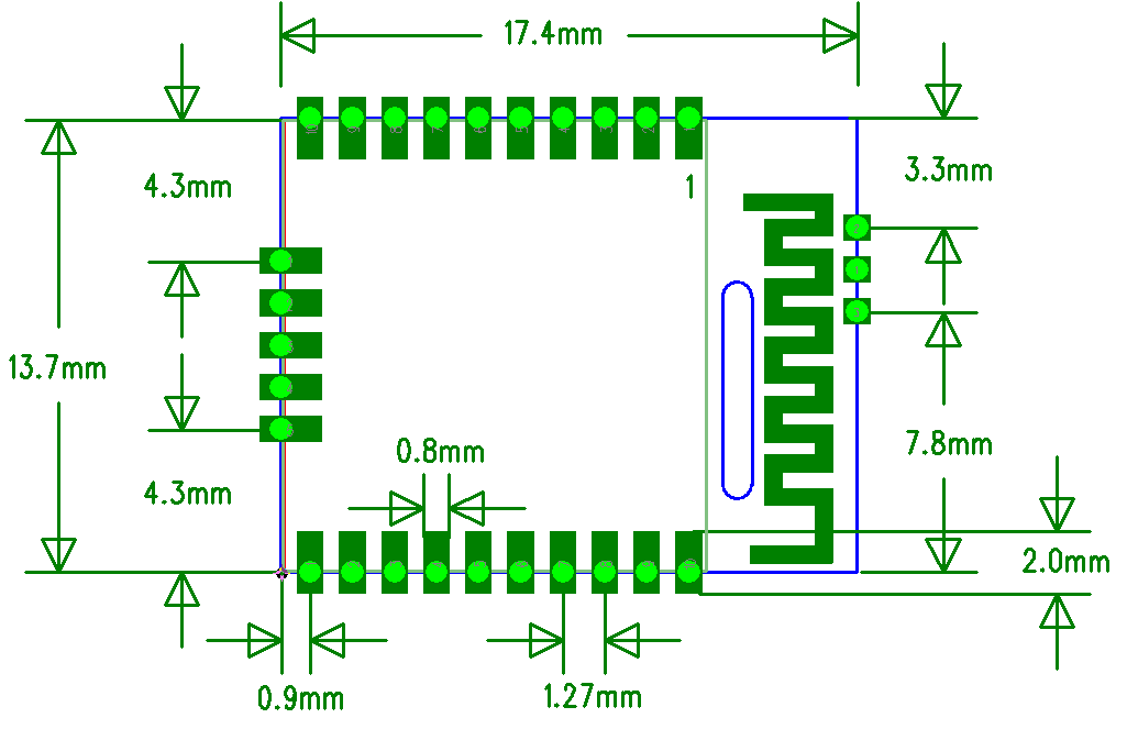 RF-BM-S01A模块尺寸(BQB认证,四层板工艺)