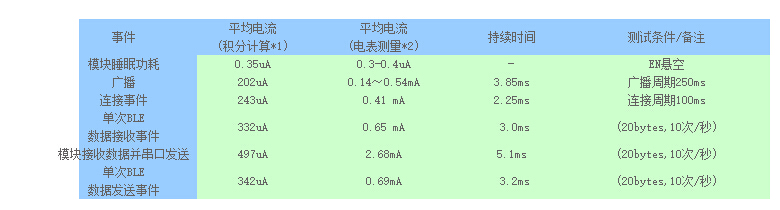 36. 极低功耗的待机模式, CC2540 芯片官方数据睡眠电流 0.4uA,模块实测功耗如下: