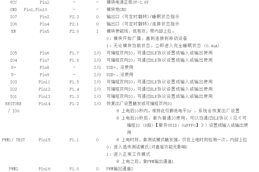 14. 支持连接状态,广播状态提示脚/普通 IO灵活配置;
