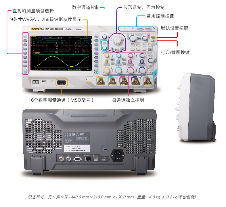 MSO/DS4000系列数字示波器是带宽100MHz ~ 500MHz,采样率高达4GSa/s,同时兼具深存储深度和高波形捕获率的高性能通用数字示波器。